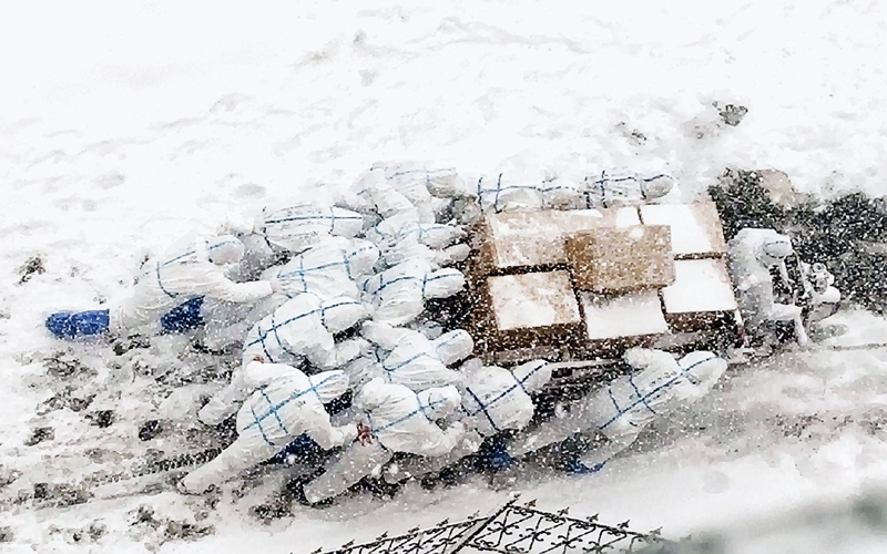 2020年12月,為應(yīng)對(duì)新冠肺炎疫情,大連海洋大學(xué)決定封閉校園,學(xué)生在宿舍隔離。該校17名平均年齡19歲的熱血青年,選擇加入志愿者隊(duì)伍,與教職工志愿者一起負(fù)責(zé)公寓區(qū)域師生生活和防疫物資的統(tǒng)一配送。圖為志愿者們推著滿載的三輪車上坡,將物資送到學(xué)生宿舍。 新華社發(fā) 大連海洋大學(xué)供圖