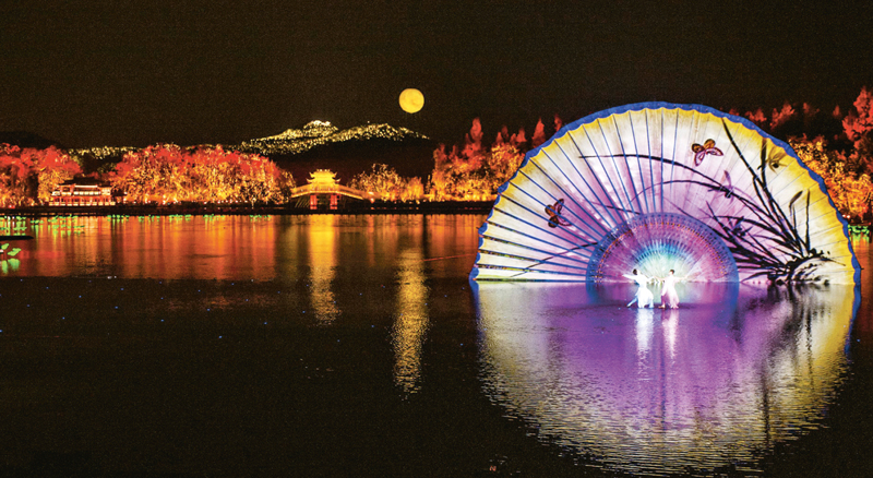 圖為2016年9月4日,在西湖湖面舉行的G20杭州峰會(huì)文藝演出《最憶是杭州》。這場藝術(shù)盛宴,向世界傳達(dá)出融合共處的美好愿景,傳遞著中國的文化自信。 視覺中國供圖