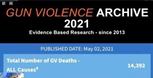 根據(jù)美國槍支暴力檔案網(wǎng)站的統(tǒng)計,今年以來,美國涉槍案件造成的死亡人數(shù)已達到14392人。