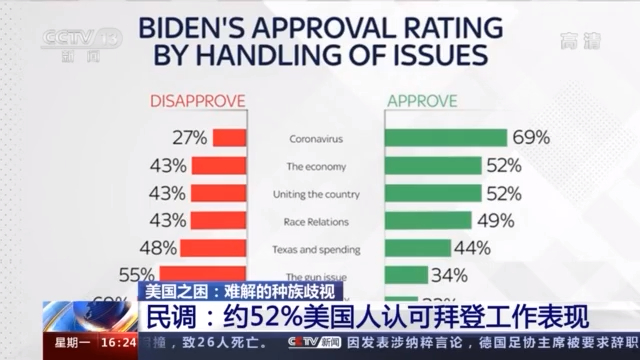 當(dāng)?shù)貢r(shí)間4月28日,美國總統(tǒng)拜登在國會(huì)山發(fā)表就職百日演說。據(jù)美國有線電視新聞網(wǎng)的民調(diào)統(tǒng)計(jì),在拜登就任總統(tǒng)滿100天之際,約52%的美國人認(rèn)可拜登的整體工作表現(xiàn),這一成績僅好于其前任特朗普,但卻低于自1953年的全部其他美國總統(tǒng)。
