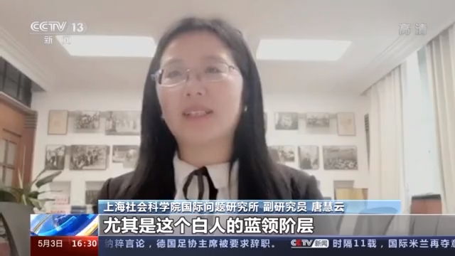 上海社會(huì)科學(xué)院國際問題研究所 副研究員 唐慧云:白人的危機(jī)是一種多種危機(jī)的疊加,尤其是在金融危機(jī)之后,白人就很多陷入了貧困,尤其是這個(gè)白人的藍(lán)領(lǐng)階層。過去這個(gè)藍(lán)領(lǐng)階層是中產(chǎn)階級(jí),在金融危機(jī)之后,很多白人就陷入貧困、酗酒,自殺率都比較的高。