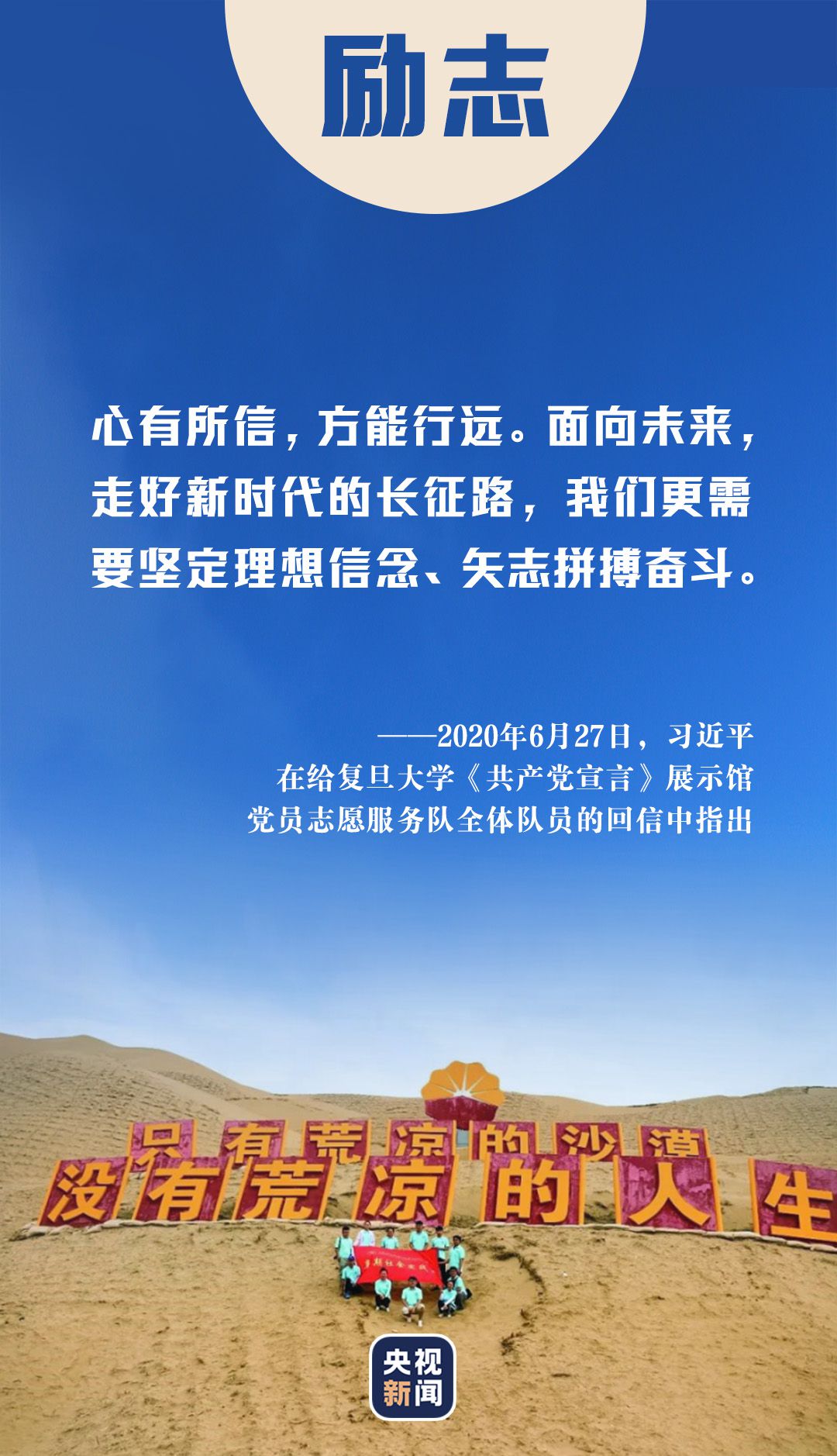 “青年最富有朝氣、最富有夢(mèng)想”“好兒女志在四方,有志者奮斗無(wú)悔”“中華民族偉大復(fù)興終將在廣大青年的接力奮斗中變?yōu)楝F(xiàn)實(shí)”....。。習(xí)近平總書(shū)記非常重視青年工作,常鼓勵(lì)青年追求夢(mèng)想、努力奮斗。諄諄良言、殷殷囑托,點(diǎn)燃廣大青年的奮斗熱情,用實(shí)際行動(dòng)唱好青春之歌。