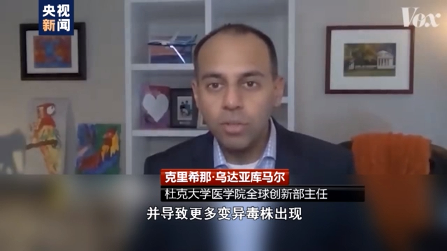 杜克大學醫(yī)學院全球創(chuàng)新部主任 克里希那·烏達亞庫馬爾:這(囤積疫苗)讓疫情持續(xù)的時間更長,感染人數(shù)增多,并導致更多變異毒株出現(xiàn),最終的結果就是,更多本可避免死亡的人會因此死去。