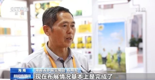 湖南省參展交易團(tuán) 陳明發(fā):我們湖南(來(lái)了)48家企業(yè),主要產(chǎn)品是以食品為主,其中有茶葉、其他的農(nóng)副產(chǎn)品一系列,大概品種有150多種,F(xiàn)在布展情況基本上是完成了,現(xiàn)在屬于調(diào)試整理、掃尾階段了。