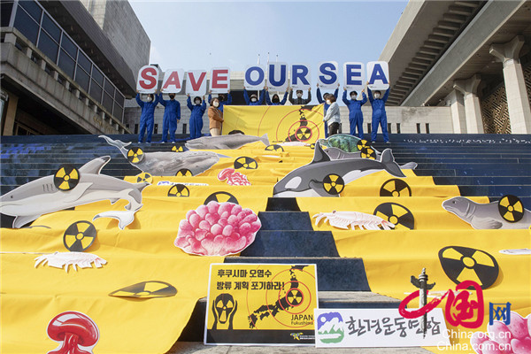 當(dāng)?shù)貢r(shí)間2020年10月26日,韓國(guó)首爾,非政府公民組織在首爾世宗文化會(huì)館舉行了一場(chǎng)示威活動(dòng),抗議日本福島第一核電站處理過的放射性水可能被排放到海洋中,敦促日方撤銷該計(jì)劃。圖片來源:視覺中國(guó)