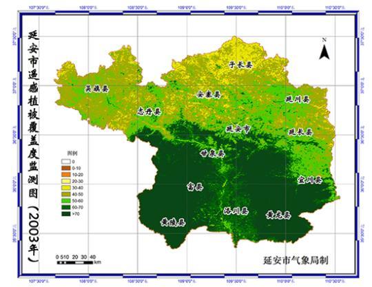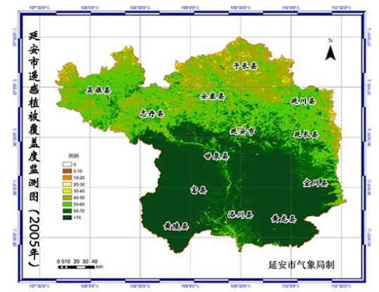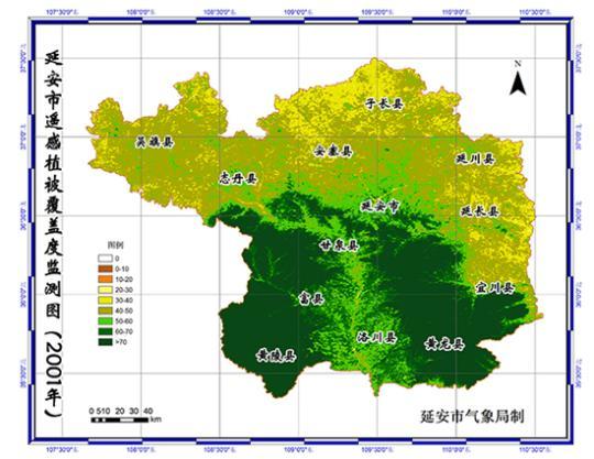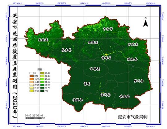 2001-2020年陜西省延安市遙感植被覆蓋度監(jiān)測圖。延安市退耕還林工程管理辦公室供圖