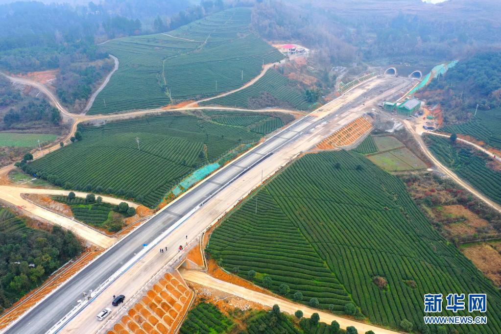 這是穿過(guò)茶園的貴州遵義至余慶高速公路(2020年12月24日攝,無(wú)人機(jī)照片)。新華社記者 劉續(xù) 攝