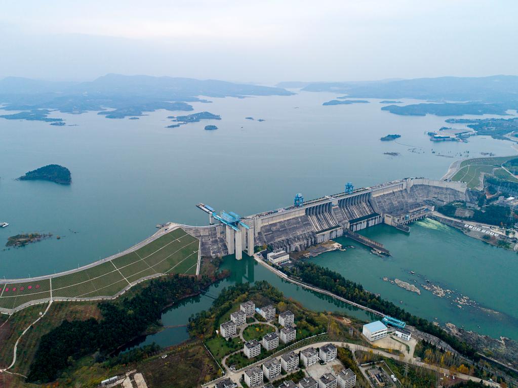 2019年11月26日無人機拍攝的丹江口水庫大壩。新華社記者 熊琦 攝