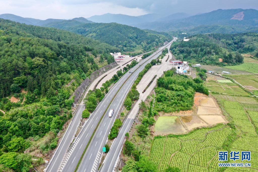 5月13日,車輛行駛在福銀高速福建省三明市尤溪縣境內路段(無人機照片)。