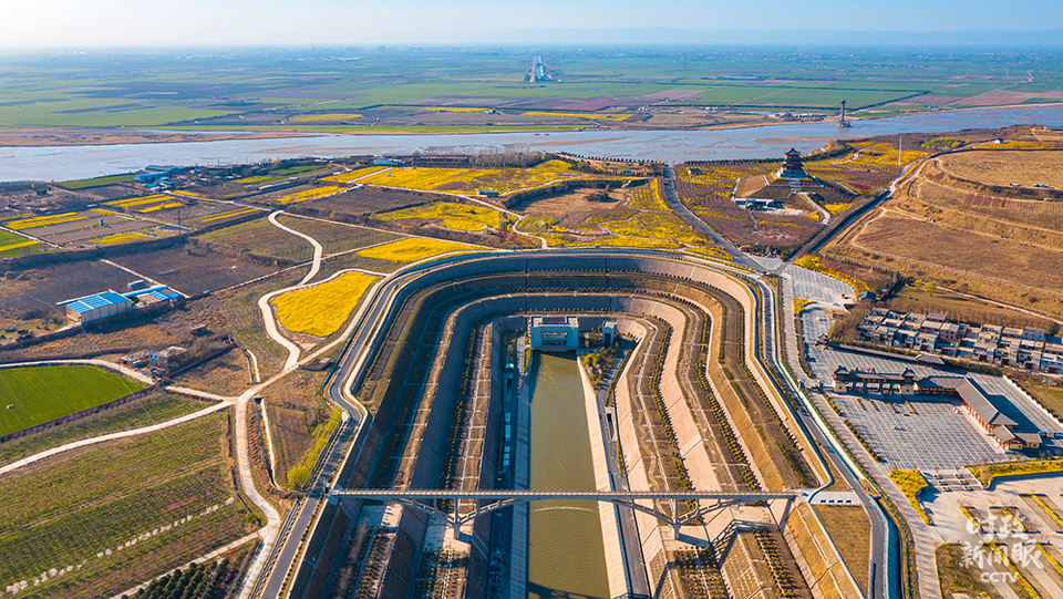 △俯瞰陶岔渠首樞紐工程(總臺(tái)央視記者段清臣拍攝)