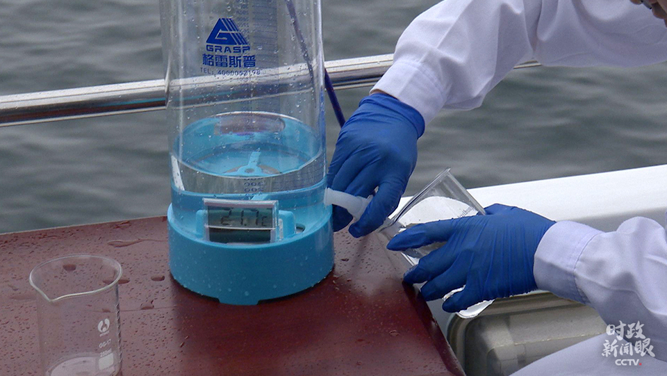 △這是考察當(dāng)天,現(xiàn)場從丹江口水庫取出的水樣。(總臺(tái)央視記者李錚拍攝)