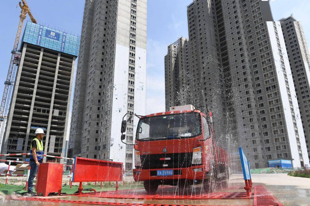 ↑ 在甘肅省蘭州市中建三局一處建設(shè)工地上,感應式的洗車臺利用循環(huán)再生水沖洗車輛,并對污水再次回收利用(5月12日攝)。