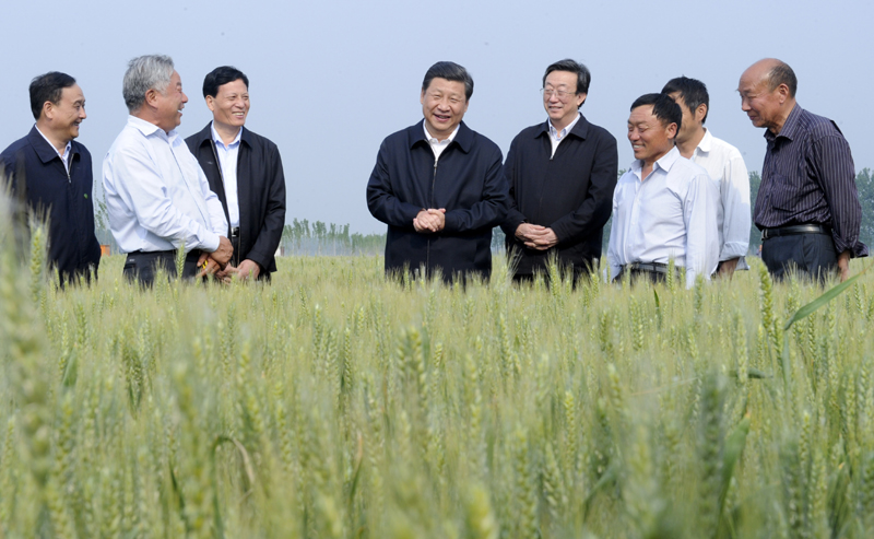 2014年5月9日至10日,中共中央總書記、國家主席、中央軍委主席習近平在河南省考察工作。這是5月9日下午,習近平在尉氏縣張市鎮(zhèn)高標準糧田察看小麥長勢。新華社記者 張 鐸 攝