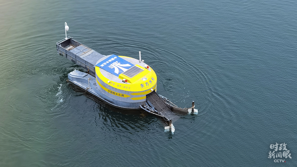 △形似小船的清漂機(jī)器人自帶攝像頭,能自動(dòng)尋找水面垃圾。(總臺央視記者馬立飛拍攝)
