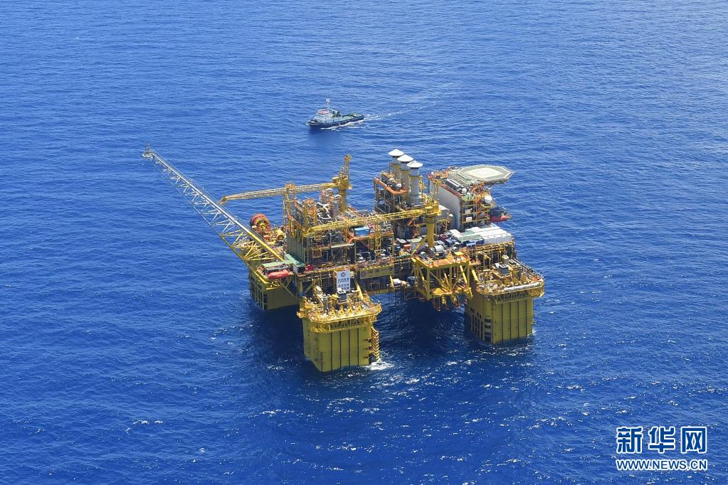 在海南島東南陵水海域拍攝的“深海一號”能源站(5月12日攝)。