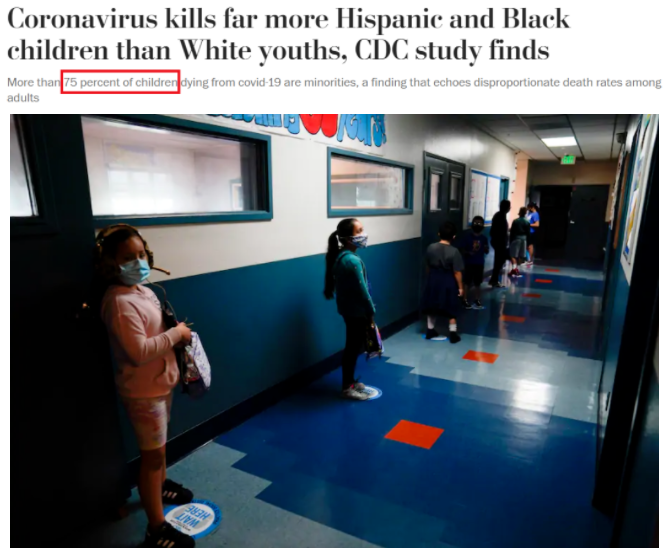 研究還發(fā)現(xiàn),新冠肺炎對少數(shù)族裔兒童和青少年的影響尤為嚴(yán)重,美國死于新冠肺炎的未成年人中有75%以上是少數(shù)族裔。