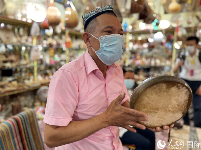 隨著喀什古城的改造,旅游業(yè)得到發(fā)展,為當?shù)貏?chuàng)業(yè)者提供了更好的創(chuàng)業(yè)環(huán)境!拔壹沂悄舅囀兰,我12歲開始學習,到我兒子已經(jīng)是第四代了,F(xiàn)在我們家的木器店越來越大,在三亞還開了第三家分店。我們也會做直播帶貨,有時候一個月就能有10萬的收入!卑缴浇硎尽