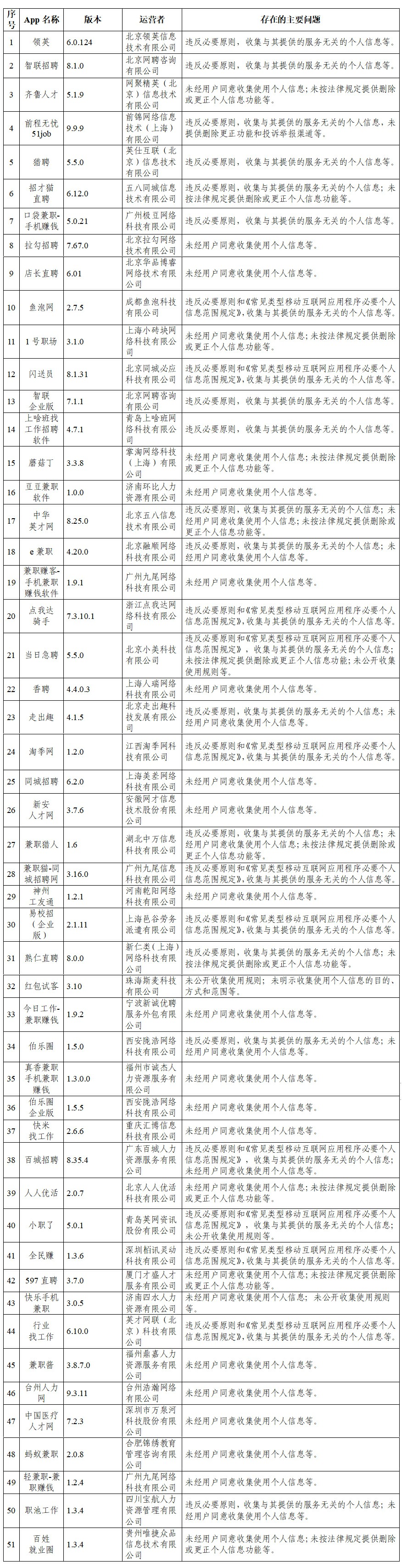 國家互聯(lián)網(wǎng)信息辦公室要求,針對(duì)檢測(cè)發(fā)現(xiàn)的問題,相關(guān)App運(yùn)營者應(yīng)當(dāng)于通報(bào)發(fā)布之日起15個(gè)工作日內(nèi)完成整改,逾期未完成整改的將依法予以處置。
