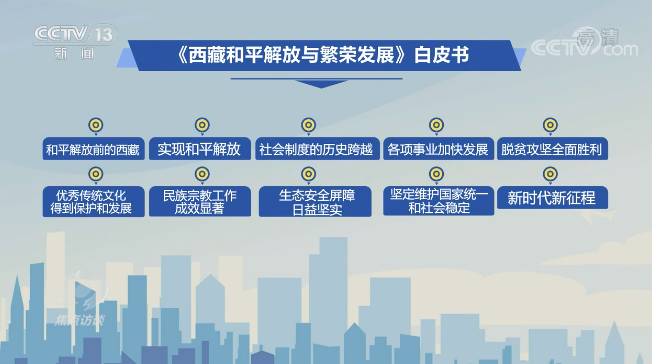 今天(21日)發(fā)布的《西藏和平解放與繁榮發(fā)展》白皮書共分為十章,分別從和平解放前的西藏、實現(xiàn)和平解放、社會制度的歷史跨越、各項事業(yè)加快發(fā)展、脫貧攻堅全面勝利、優(yōu)秀傳統(tǒng)文化得到保護和發(fā)展、民族宗教工作成效顯著、生態(tài)安全屏障日益堅實、堅定維護國家統(tǒng)一和社會穩(wěn)定、新時代新征程10個方面進行闡述,回顧歷史進程、展示偉大成就,全面立體真實展現(xiàn)社會主義新西藏。