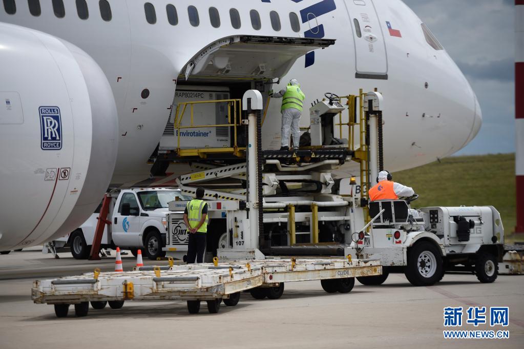 2021年3月16日,在烏拉圭首都蒙得維的亞,工作人員從飛機(jī)上卸載中國(guó)科興新冠疫苗。新華社發(fā)(尼古拉斯·薩拉亞 攝)
