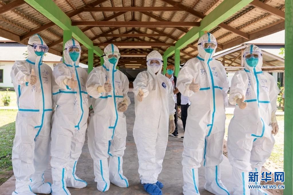 2021年5月10日,中國(guó)抗疫專家組在老撾北部烏多姆賽省準(zhǔn)備進(jìn)入新冠確診患者隔離病房。新華社發(fā)(農(nóng)麗春攝)