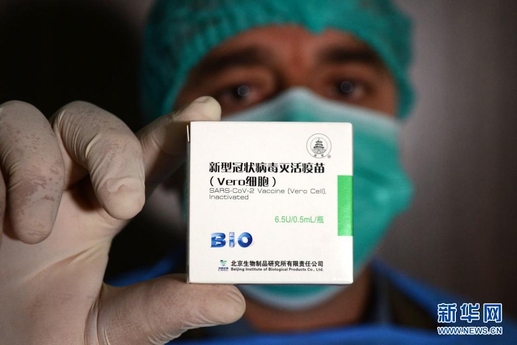 2021年2月3日,在巴基斯坦白沙瓦,一名醫(yī)務(wù)人員展示中國(guó)捐贈(zèng)的新冠疫苗。新華社發(fā)(奧馬爾·卡尤姆攝)