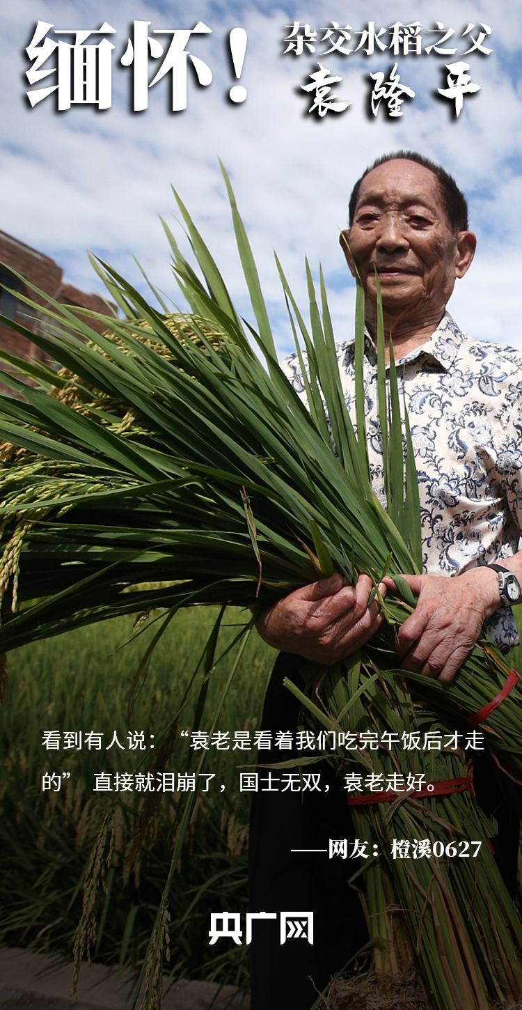淚目!網(wǎng)友集體緬懷袁隆平:您是看著我們吃完午飯才走的
