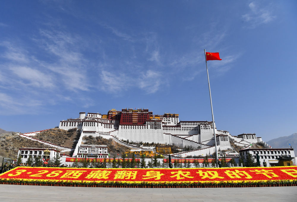 ↑2021年3月28日拍攝的拉薩布達(dá)拉宮廣場。當(dāng)日,西藏各族各界群眾慶祝西藏百萬農(nóng)奴解放紀(jì)念日。