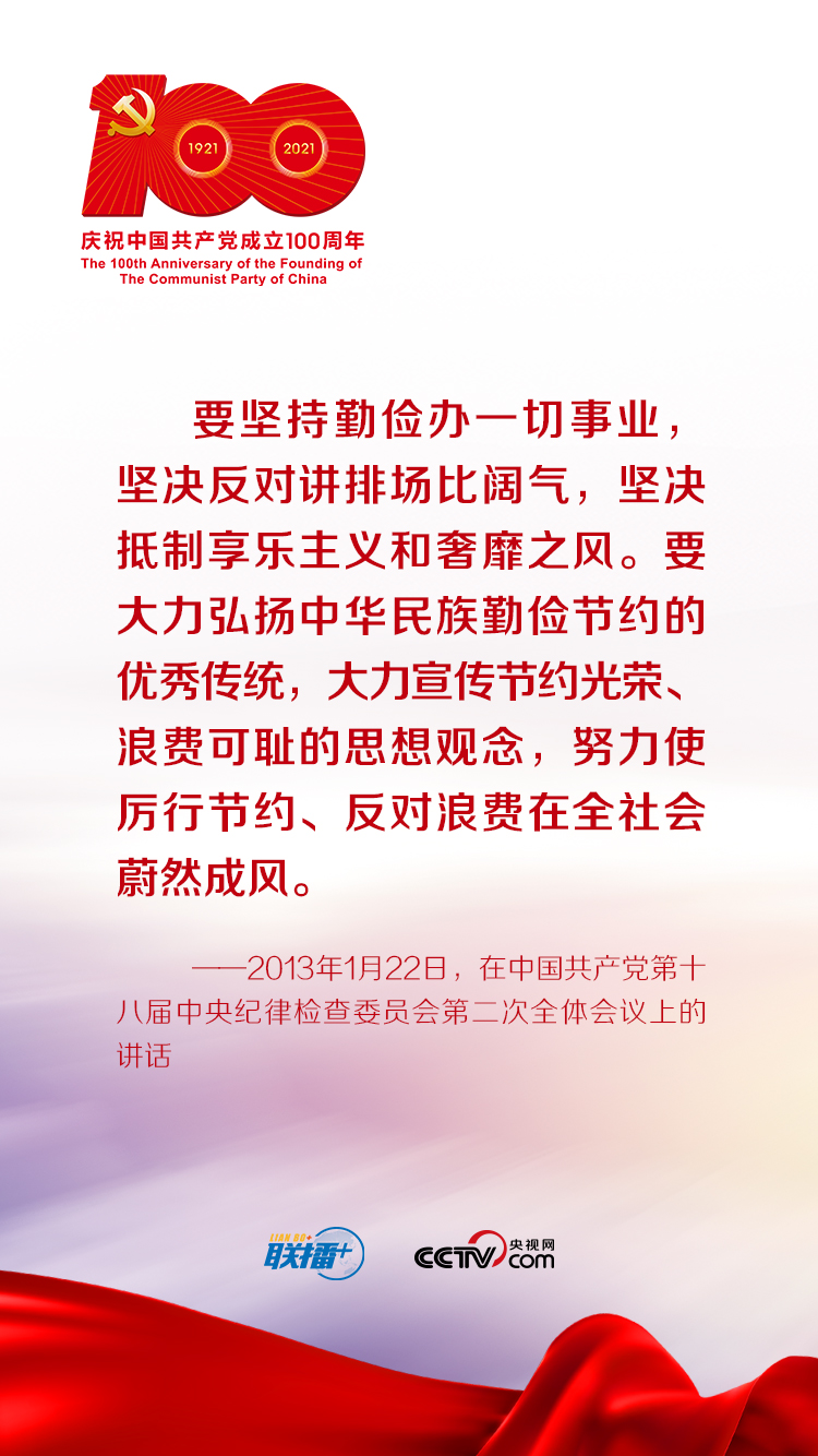 聯(lián)播+“節(jié)儉樸素,力戒奢靡,是我們黨的傳家寶,F(xiàn)在,我們生活條件好了,但艱苦奮斗的精神一點(diǎn)都不能少,必須堅(jiān)持以儉修身、以儉興業(yè),堅(jiān)持厲行節(jié)約、勤儉辦一切事情!