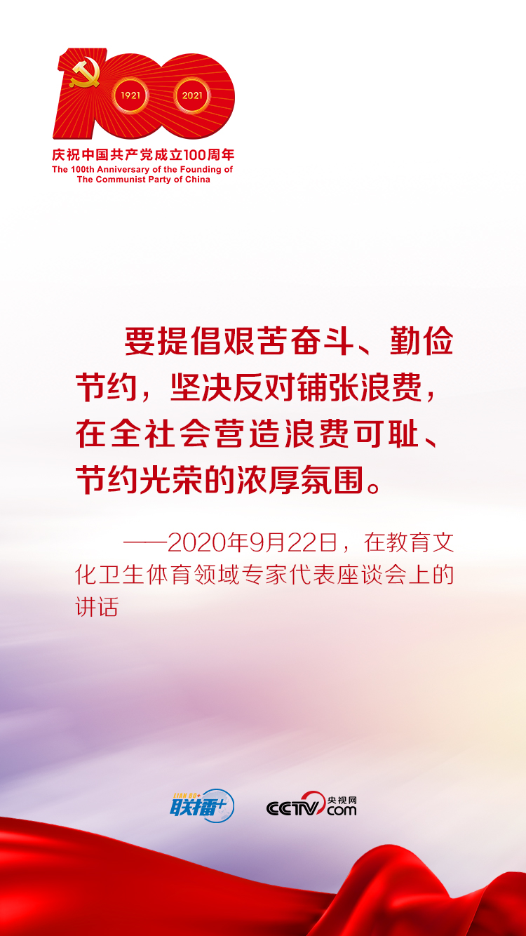 今年是中國共產(chǎn)黨成立100周年。央視網(wǎng)《聯(lián)播+》欄目特梳理習(xí)近平總書記關(guān)于艱苦奮斗、勤儉節(jié)約的重要論述,與您一起學(xué)習(xí)。