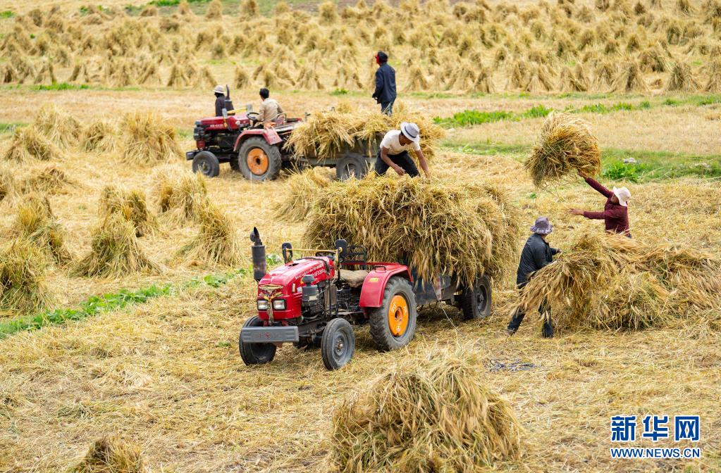 西藏昌都市八宿縣然烏鎮(zhèn)康沙村的村民在收青稞(2020年9月10日攝)。