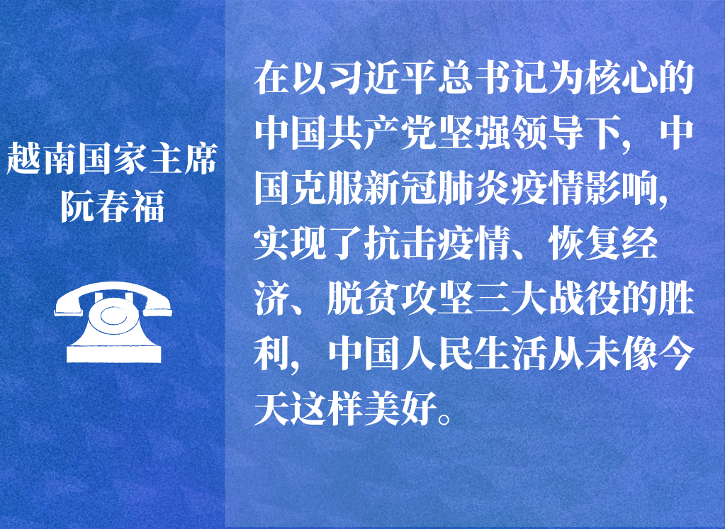 疫情沖擊之下,中國(guó)脫貧攻堅(jiān)取得全面勝利,全面建設(shè)小康社會(huì)取得重大戰(zhàn)略性成果,開(kāi)啟全面建設(shè)社會(huì)主義現(xiàn)代化國(guó)家新征程。外方領(lǐng)導(dǎo)人這樣點(diǎn)贊中國(guó)的發(fā)展成就——