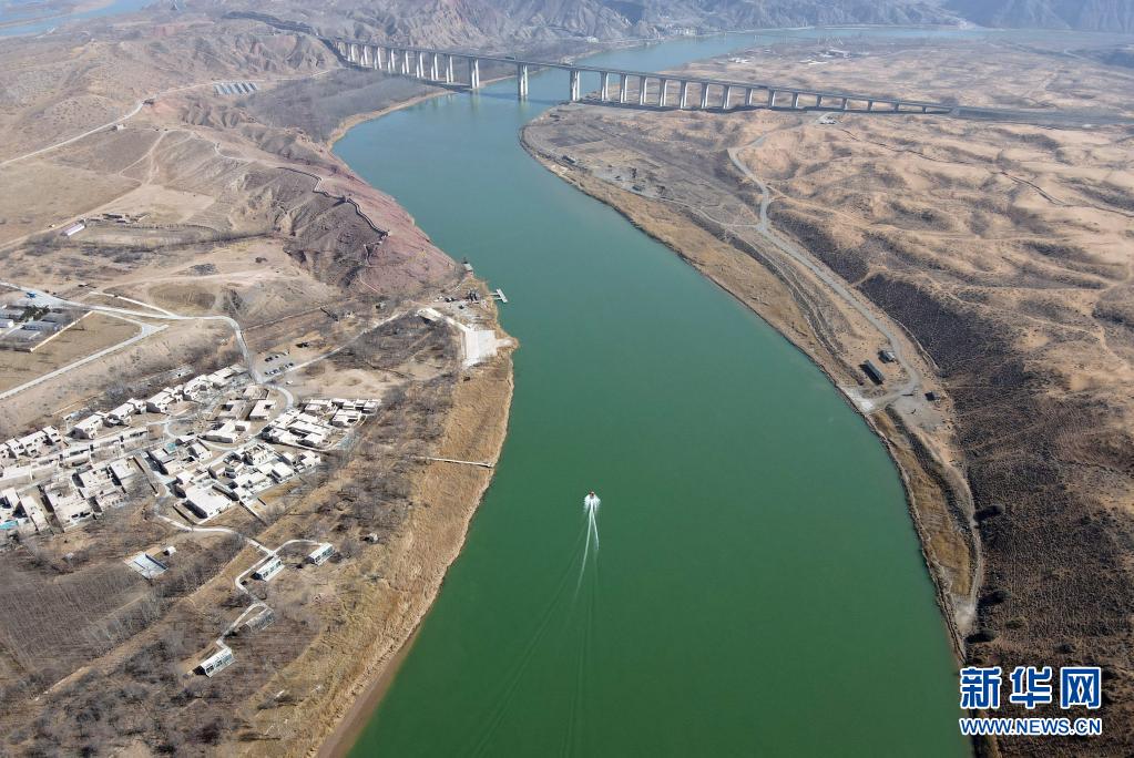 黃河流經(jīng)寧夏中衛(wèi)市沙坡頭區(qū)(2021年3月3日攝,無(wú)人機(jī)照片)。新華社記者 唐如峰 攝