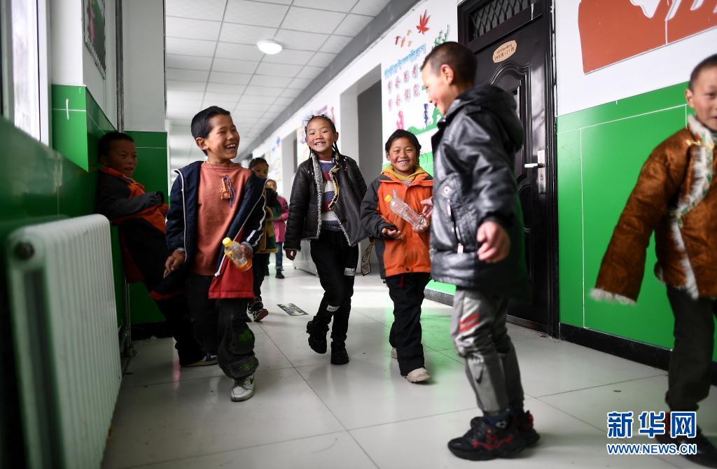 2021年3月26日,青海瑪多縣民族寄宿制中學(xué)二年級(jí)的學(xué)生在課間玩耍。該校目前采用清潔取暖方式,學(xué)生的學(xué)習(xí)和生活環(huán)境大為改善。新華社記者 張宏祥 攝