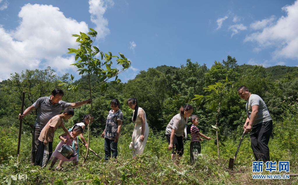 姚祖元(右一)與家人一起種樹(shù)(2019年7月13日攝)。在秦嶺深處的陜西省漢中市留壩縣火燒店鎮(zhèn),姚家五代人歷時(shí)70年深耕秦嶺的故事在當(dāng)?shù)丶矣鲬?hù)曉,傳為佳話(huà)。新華社記者 陶明 攝