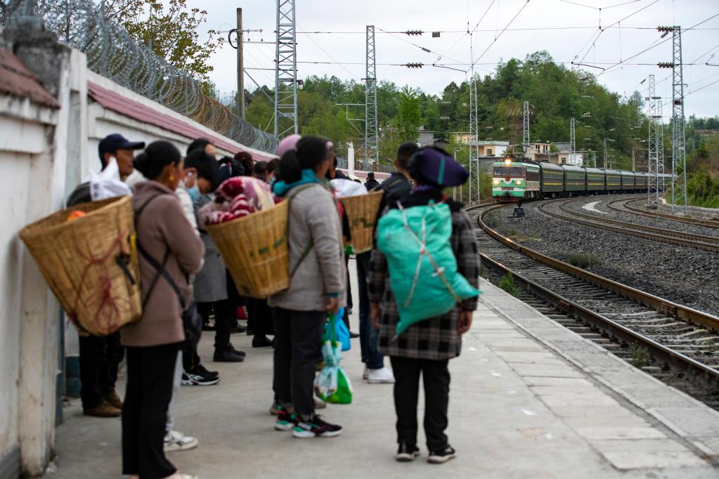 在成昆鐵路上普雄站,人們準(zhǔn)備乘坐5633次列車出行。新華社記者沈伯韓攝