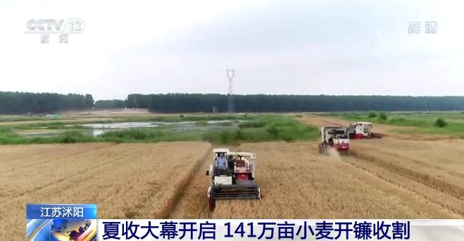 在江蘇沭陽(yáng)縣,141萬畝小麥開鐮收割。伴隨著機(jī)器的轟鳴聲,收割機(jī)在金色的麥浪中來回馳騁,飽滿的麥粒歡快地蹦進(jìn)車倉(cāng)。