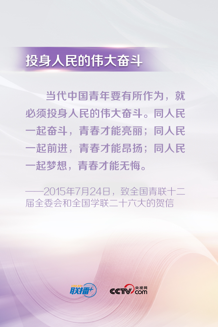習(xí)近平總書記一直以來都十分關(guān)心青年成長成才,常常走近青年、傾聽青年、鼓勵青年。他說,“青年最富有朝氣、最富有夢想”,“中華民族偉大復(fù)興終將在廣大青年的接力奮斗中變?yōu)楝F(xiàn)實”。央視網(wǎng)《聯(lián)播+》特梳理總書記對廣大青年的寄語,與您一起學(xué)習(xí)。