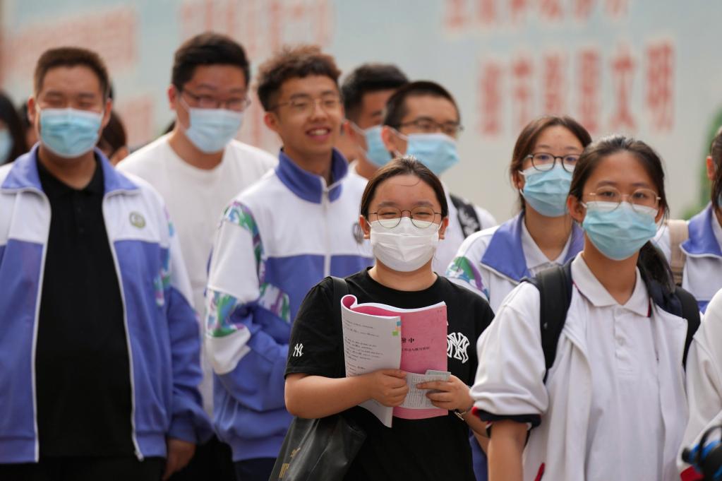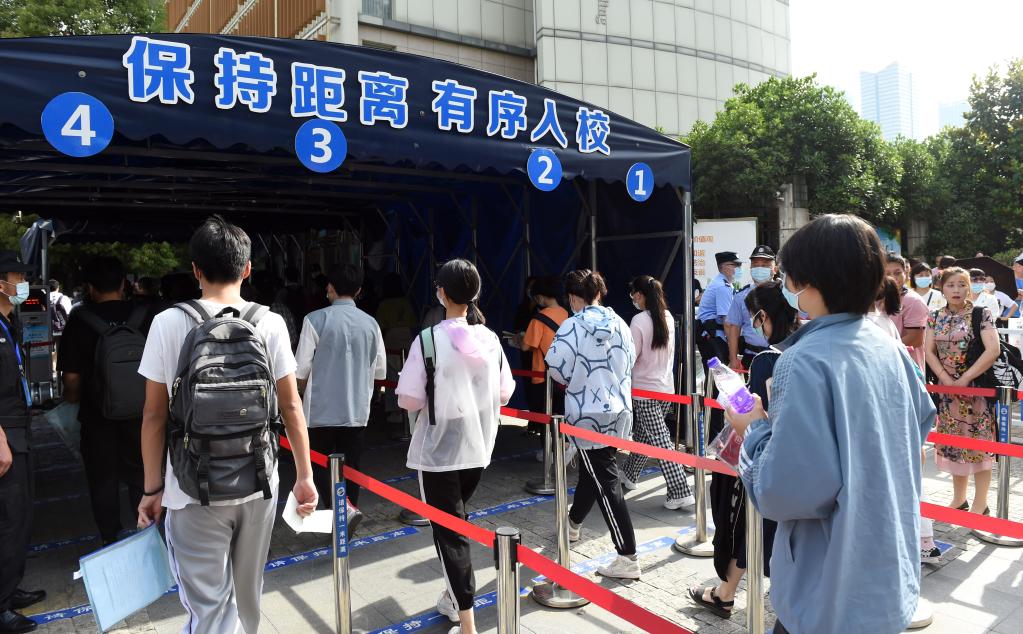 在安徽省合肥市五十中學(xué)天鵝湖校區(qū)考點(diǎn),考生們有序進(jìn)入考場(chǎng)。新華社記者 周牧 攝