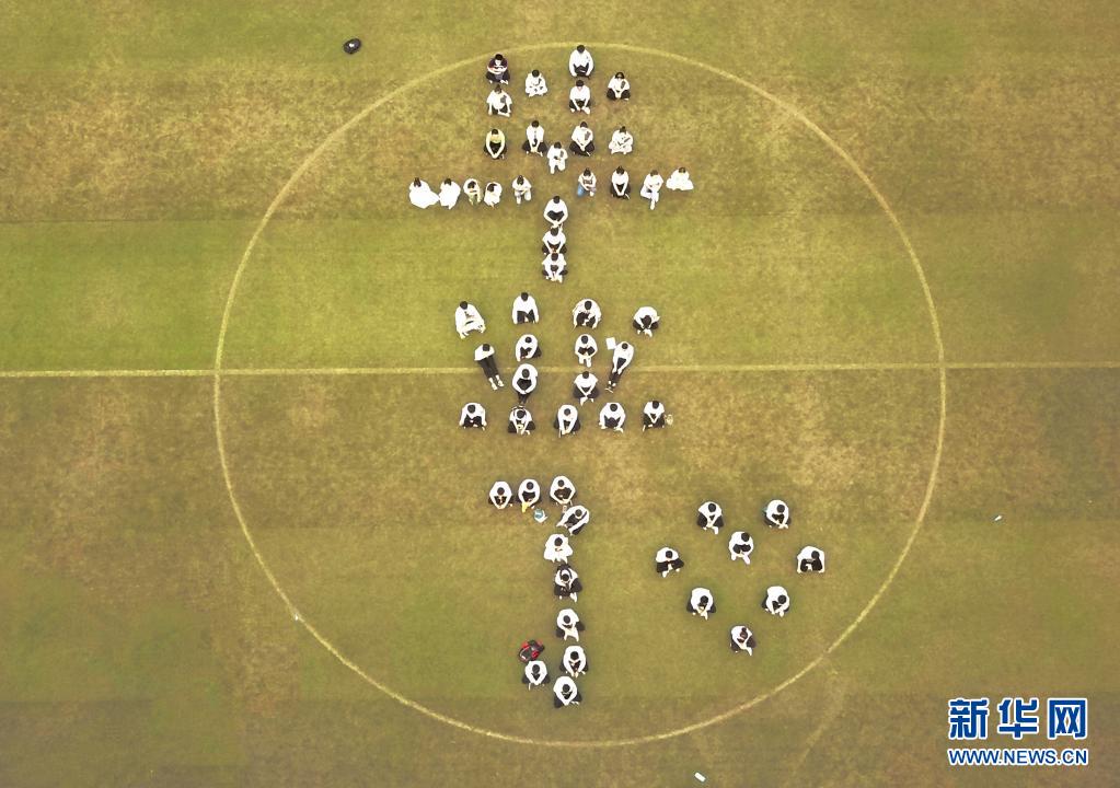 6月9日,焦作市溫縣一中高三畢業(yè)生在校園里擺出“畢業(yè)了”字樣拍攝畢業(yè)照。