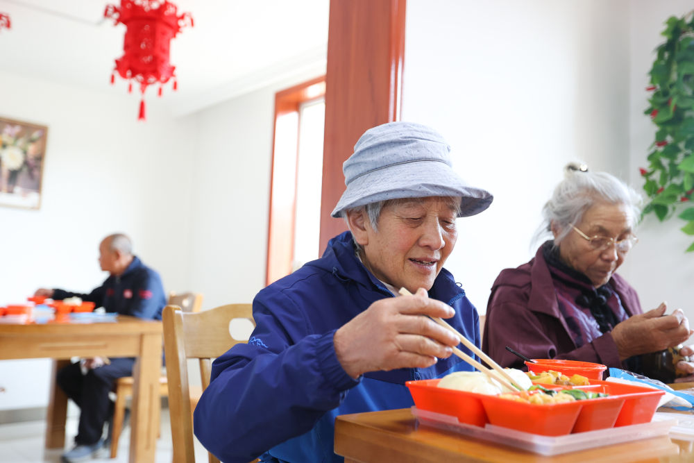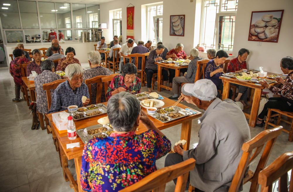 2019年起,天津市開始建設(shè)“老人家食堂”,為老年人提供安全、方便、實(shí)惠的助餐服務(wù)。這是2020年7月7日,老人在西青區(qū)精武鎮(zhèn)付村康養(yǎng)中心“老人家食堂”用餐。
