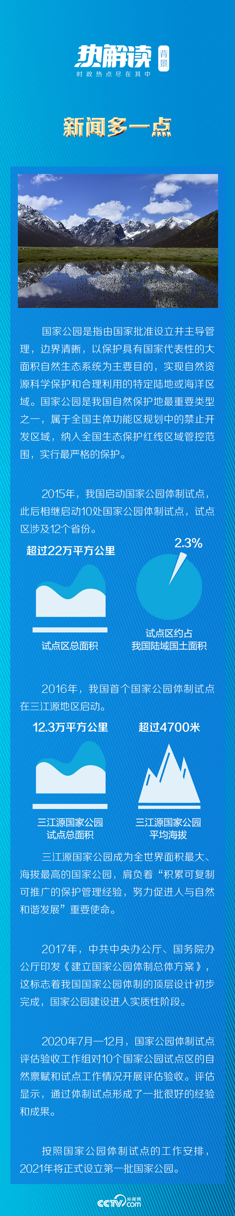 國(guó)家公園保護(hù)的是全國(guó)最精華、最珍貴、最核心的自然生態(tài)資源,是生物多樣性最富集的地方。建立國(guó)家公園體制,是黨中央站在實(shí)現(xiàn)中華民族永續(xù)發(fā)展的戰(zhàn)略高度作出的重大決策,是生態(tài)文明和美麗中國(guó)建設(shè)具有全局性統(tǒng)領(lǐng)性和標(biāo)志性的重大制度創(chuàng)新。
