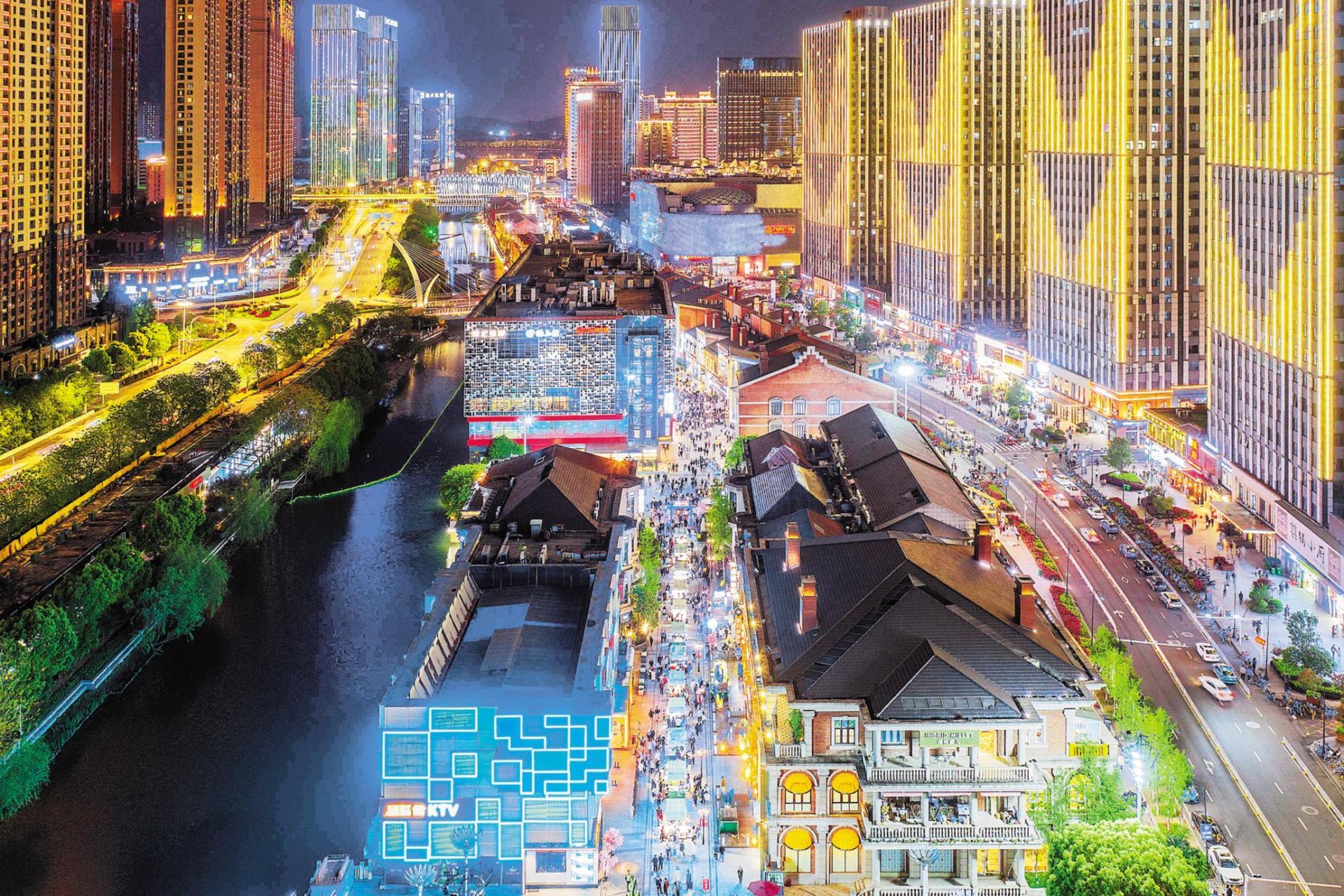 2021年4月4日夜,漢街人頭攢動,市民游客人流如潮,武漢的商業(yè)旅游快速恢復。 湖北日報全媒記者 梅濤 攝