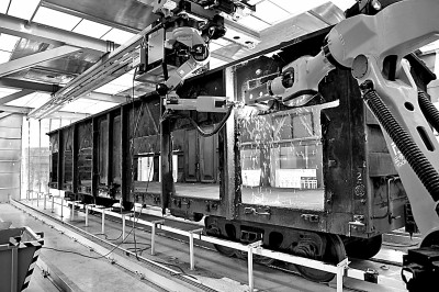 安徽合肥,報廢鐵路貨車被機(jī)器人自動拆解,通過深加工變成農(nóng)機(jī)具、五金件等產(chǎn)品。 新華社發(fā)