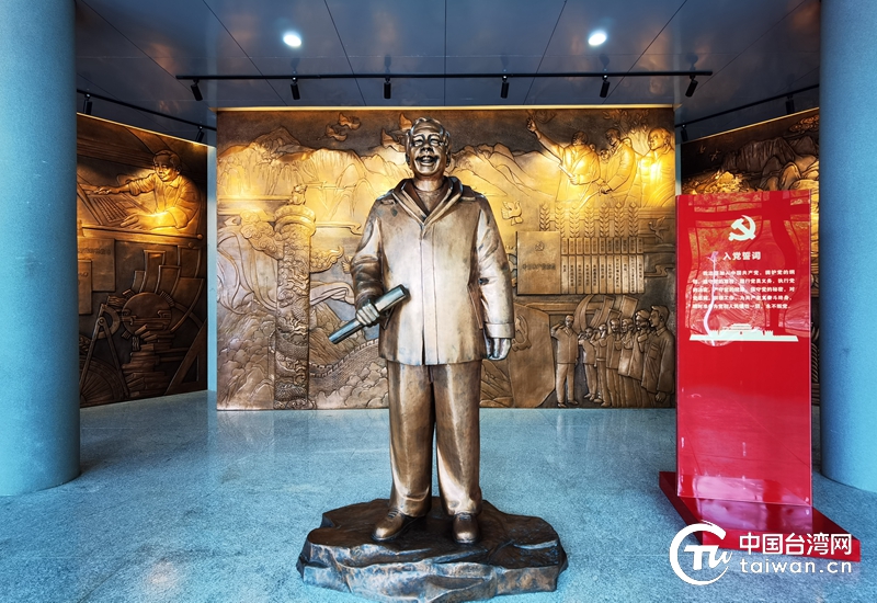李保國先進(jìn)事跡展覽館前廳安放的李保國同志的銅像。(中國臺灣網(wǎng) 張亞靜 攝)
