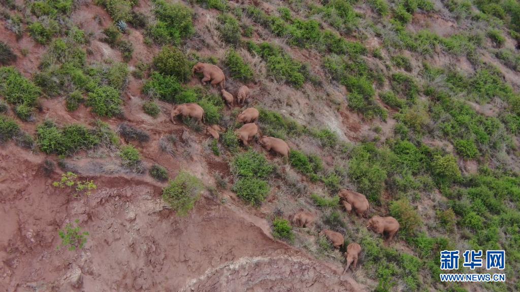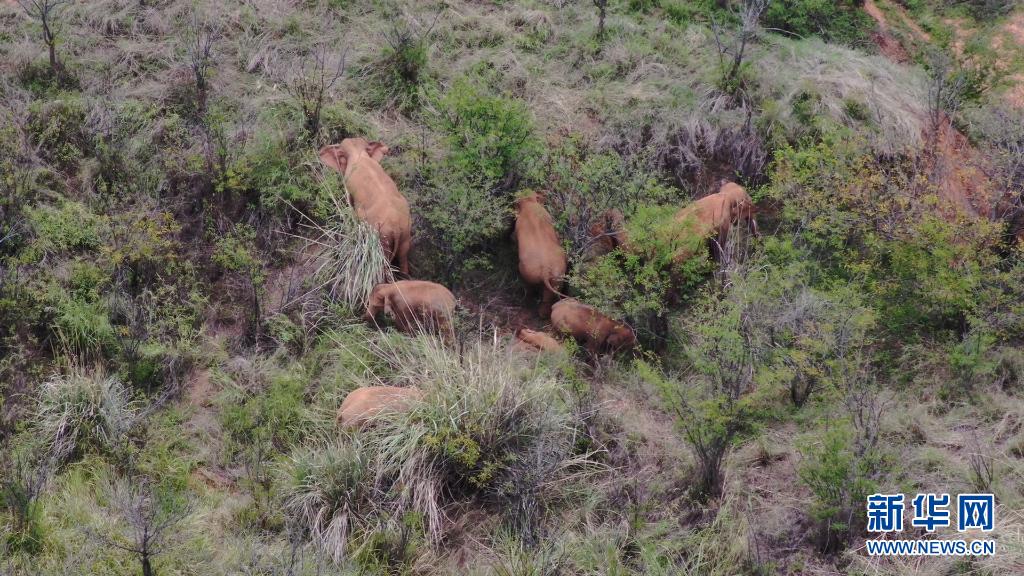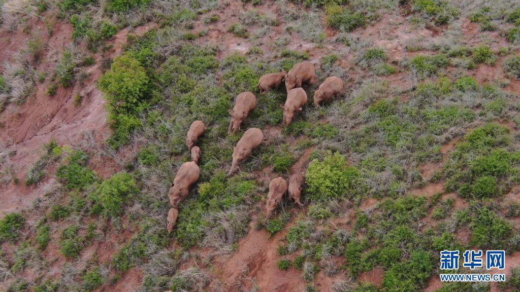 6月18日在玉溪市峨山縣境內(nèi)拍攝的象群(無(wú)人機(jī)視頻截圖)。新華社發(fā)