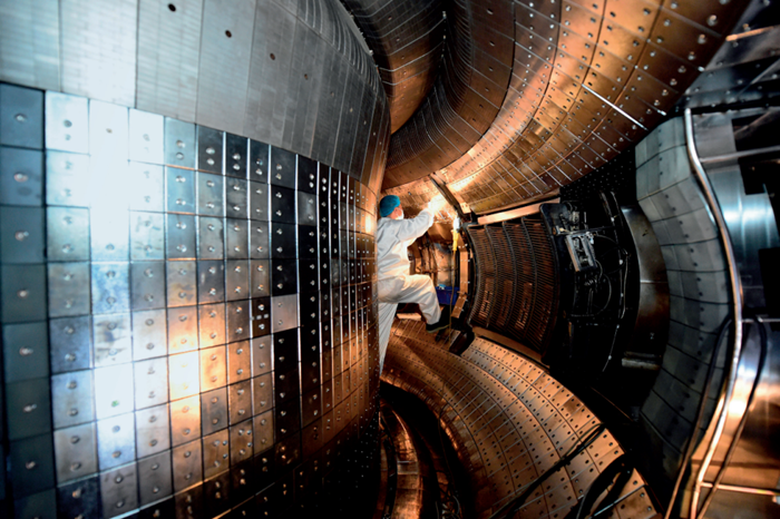在中科院合肥物質(zhì)科學(xué)研究院,工作人員對(duì)全超導(dǎo)托卡馬克核聚變實(shí)驗(yàn)裝置( EAST)進(jìn)行升級(jí)改造( 4月28日攝) 黃博涵攝 / 本刊