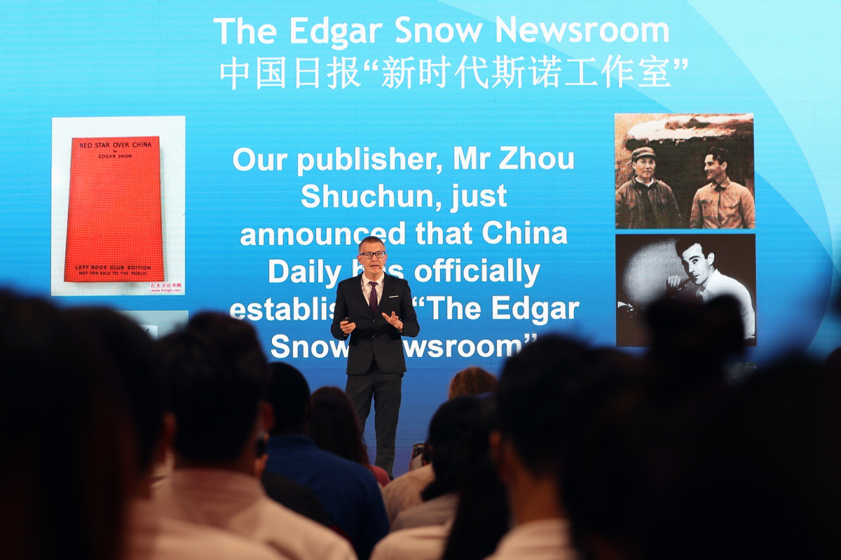 6月20日,為迎接和慶祝中國共產(chǎn)黨成立100周年,展示百年光輝歷程,傳播紅船精神,對外講好中國共產(chǎn)黨的故事,中國日報社聯(lián)合中共浙江省委宣傳部和中共嘉興市委于6月20日在嘉興南湖,共同舉辦主題為“從紅船走來:代表歷史前進方向的人民政黨”的“新時代大講堂”;顒悠陂g,中國日報社還宣布成立“新時代斯諾工作室”。工作室將充分發(fā)揮報社資深外籍專家和國際友人的作用,對外講好中國故事和中國共產(chǎn)黨的故事,展示真實、立體、全面的中國。中國日報社資深外籍記者聶子瑞(Erik Nilsson)作為嘉賓發(fā)表了演講。