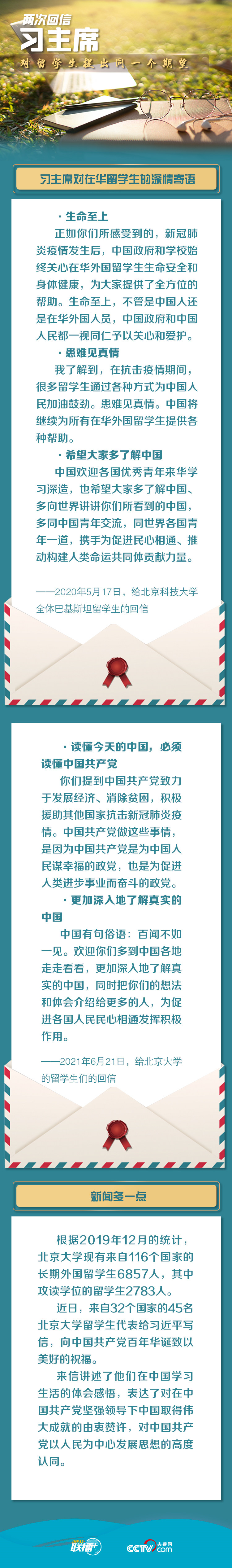 6月21日,習(xí)近平主席給北京大學(xué)的留學(xué)生們回信。