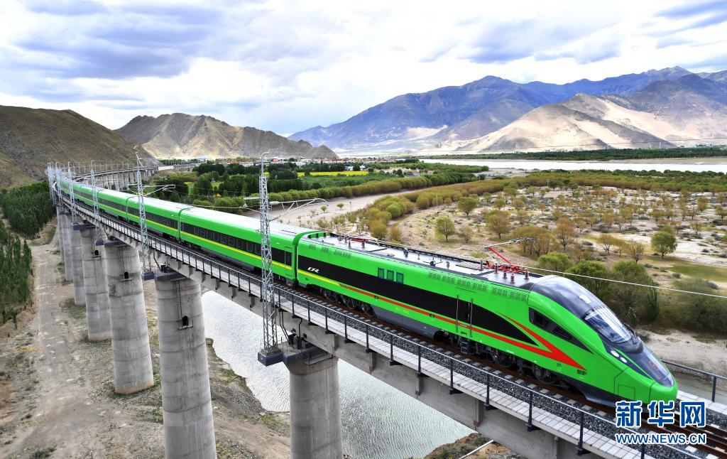 試運行的復(fù)興號列車行駛在西藏山南市境內(nèi)(6月16日攝)。新華社記者 覺果 攝